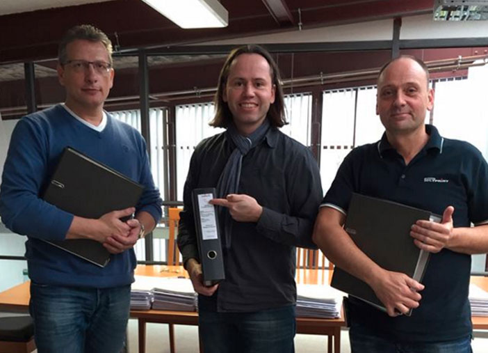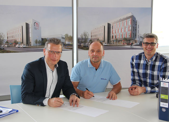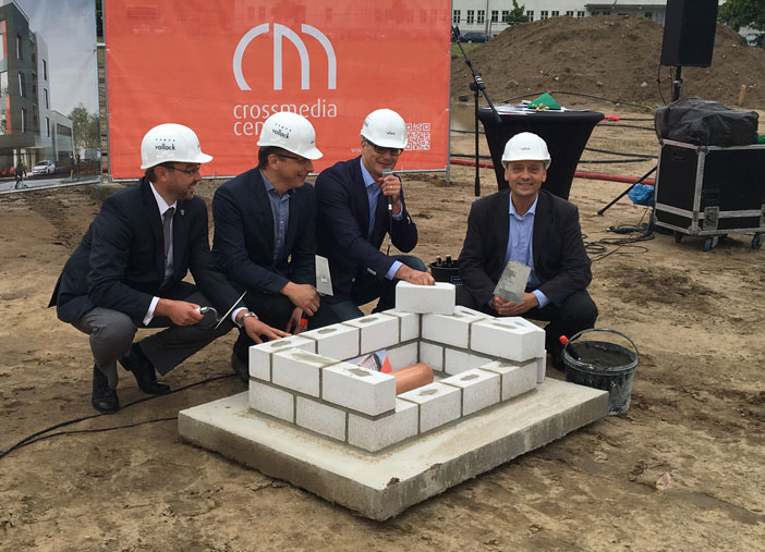 Zum sonnigen Wochenendstart am letzten Freitag haben wir bei der Vollack Gruppe den Werkvertrag für unser CMC unterzeichnet und den Bau beauftragt. Das Cross Media Center wird somit ein nach KfW 55 standardisiertes Effizienzhaus (55% weniger Energiebedarf als ein vergleichbares Haus, das nach ENEV 2014 errichtet wird) mit einer Bruttogeschossfläche nach DIN in Höhe von 4.700m².